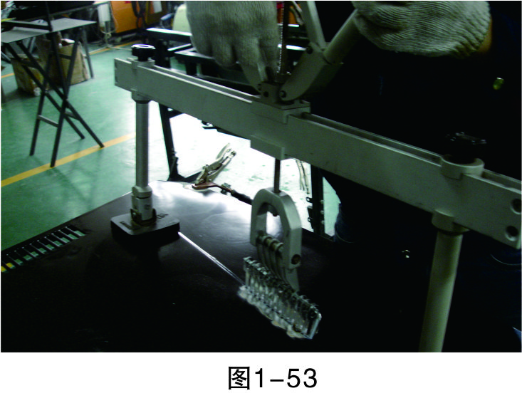 步驟12(松開螺母):兩手輕輕拉伸手柄,使螺母與連桿之間產(chǎn)生一定空位,慢慢松開上面的螺母,如圖1-53所示。