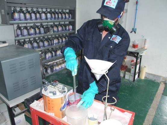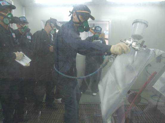 老師們進(jìn)行調(diào)配底漆