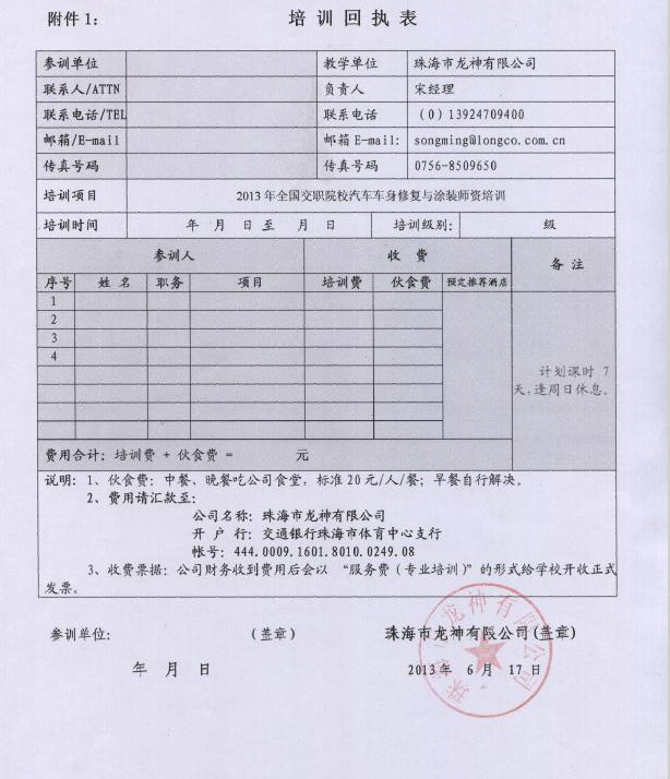2、報名回執(zhí)表需在培訓開始前5日,回傳至我司。